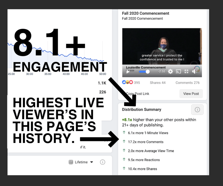 When graduation went virtual during COVID-19, we turned challenge into opportunity with a Facebook Live Premiere at a drive-in theater. Families celebrated together from their cars, creating a milestone moment that felt bigger than ever. The success sparked an ongoing “Final Walk” livestream series.